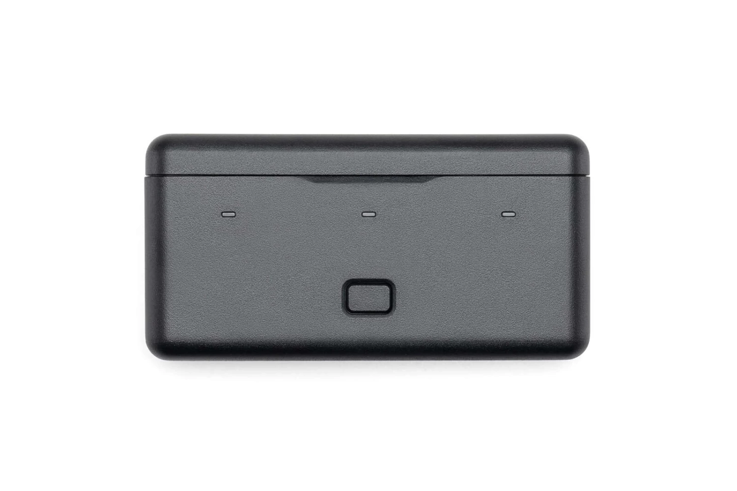 Stores three batteries and two microSD cards. Intelligently fast charges three batteries, and can be used together with those batteries as a power bank to charge other devices like a smartphone.