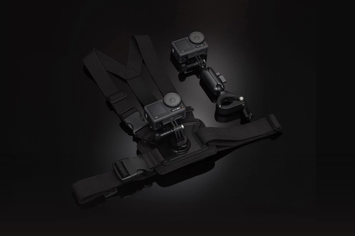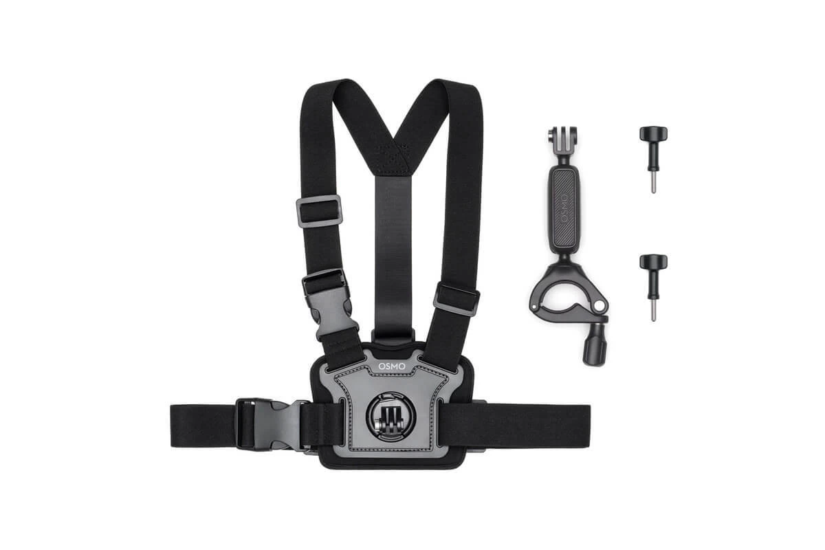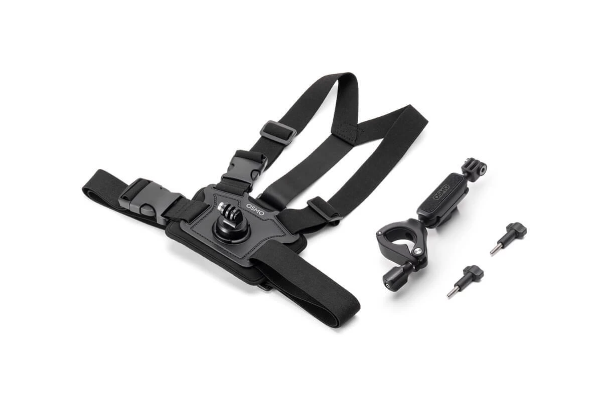 Includes the Osmo Action Chest Strap Mount, Osmo Action Handlebar Mount, and Osmo Locking Screws to secure your camera to your chest or handlebars, allowing you to focus on your ride and stay in the moment.