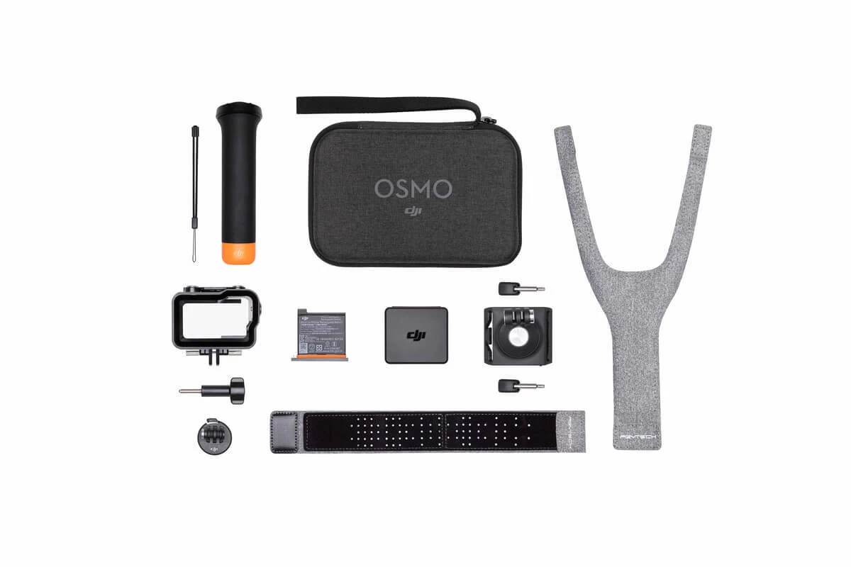 The Osmo Action Floating Handle helps the camera float in water. The waterproof case protects your Osmo Action in water at depths of up to 60 m. The wrist strap enables you to fasten the camera to your wrist so that you don’t have to worry about dropping it when you swim, surf, or enjoy other water sports. An extra battery provides a longer shooting time. All these accessories can be easily packed in the convenient Osmo Carrying Case so that you can take them wherever you go.