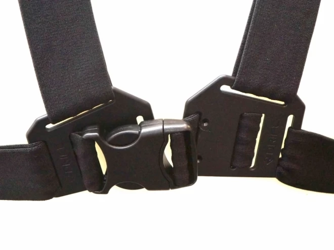 The camera’s Quick Release just clips in as normal and the camera can face forward, backward or anywhere in-between. And it can be attached to either shoulder.