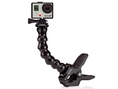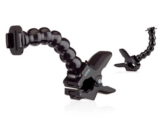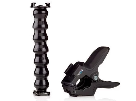 Clamp your GoPro to objects ranging in size from 0.25 to 2in (0.6 to 5cm) in diameter. Attach your camera directly to the clamp for low-profile mounting, or use the optional neck to achieve a wider range of camera-angle adjustability. Jaws securely grips irregular shapes and super slim objects thanks to its innovative design.