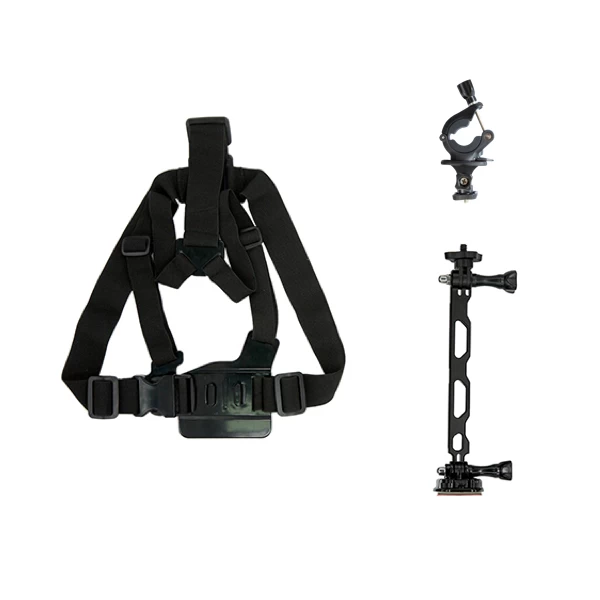 Helmet flat adhesive mount (including extension pole), Pole Mount, and chest strap