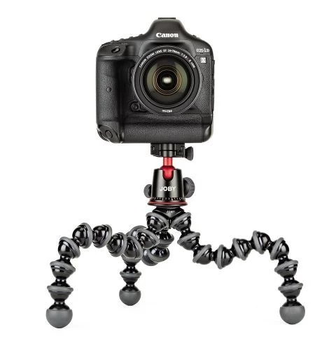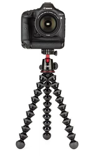 Built for the Pro. Machined aluminum GorillaPod plus precision-engineered ball head with Arca-Swiss® compatible quick release plate. Can be configured for still photography, cinematography, vlogging or live streaming in 3 modes: grip, wrap or stand. Supports professional cameras and devices weighing up to 11 lbs. Also fits the Ballhead X Quick-Release plate.