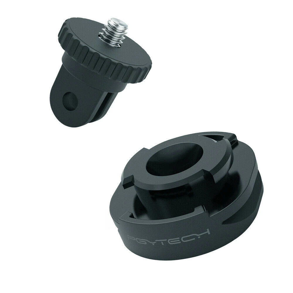 - PGYTECH DJI Osmo Action Tripod Adapter is tailored for functional extension and offering more connecting options for your DJI Osmo Action. The adapter has two quick-release plate openings on each side, which precisely match mounts with the quick-release plate. A quick-release design on one side of the adapter is tailored for the DJI Osmo Action’s adhesive mount.