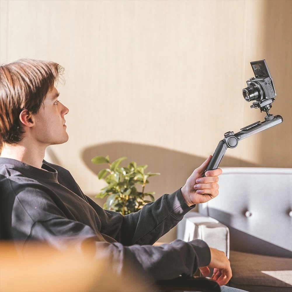 - 7 modes to capture every angle of your life (Extended Mode, Lowered View Mode, Elevated Tripod Mode, Mantis Mode, Mobile Vlogging Mode, Vertical Shooting Mode, Handheld Mode).
