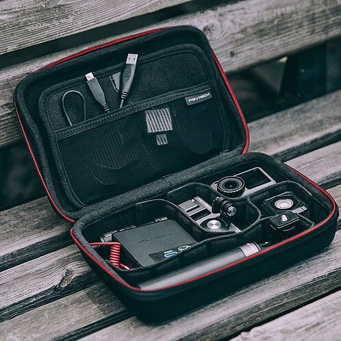 - It ensures the vlog making is under your control with the free transition between vertical and horizontal shooting modes, coupled with shooting position changes between extension pole and tripod stand, and extended shooting coverage. PGYTECH Carrying Case is a portable storage solution for battery, power bank, data cable and microphone with customized storage space.
