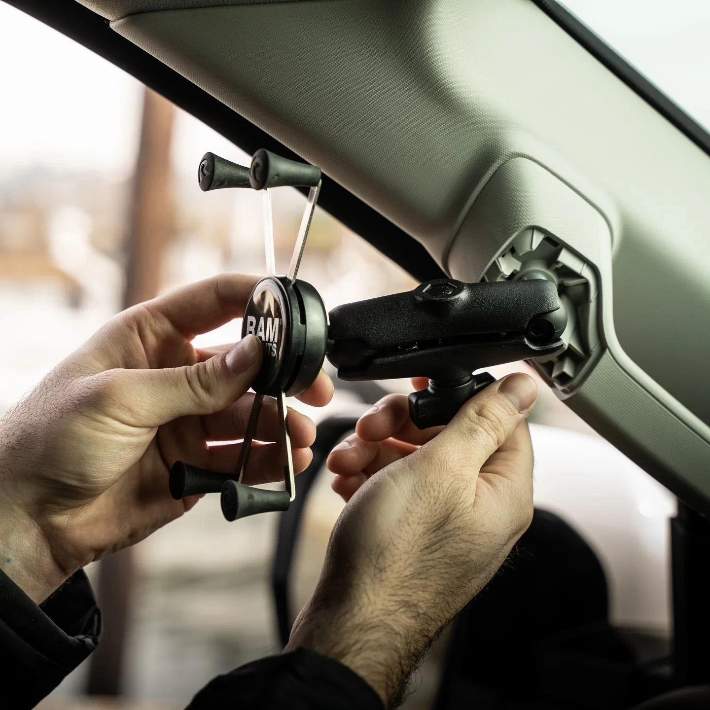 The RAM® Grab Handle Bolt Adapter Base is the ideal base for installing RAM® Mounts on a Toyota Tundra’s grab handle using a M6 threaded bolt. With a hollow center, you are able to feed the 6mm bolt or smaller to screw into your vehicle’s grab handle for a stable mounting base with no drilling required. Keep your windshield clean, and your phone mount out of the way with this grab handle mount for phones, GPS devices, GoPro® cameras, and more! While the Toyota Tundra is the only vehicle with confirmed compatibility, any vehicle which employs a 6mm bolt or smaller on its structure is compatible with this product. A smaller bolt can be used, though the load capacity decreases with the bolt size.