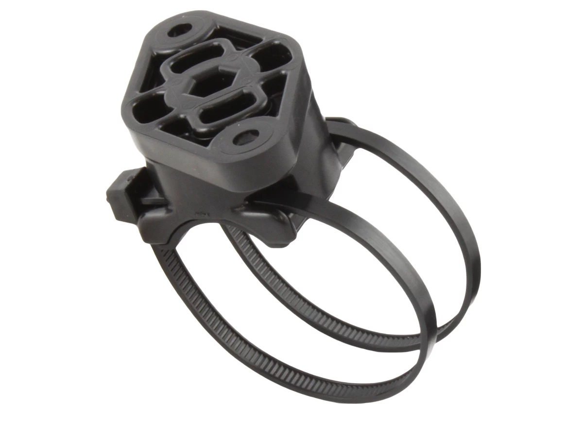 The RAP-274-1U consists of the RAM® EZ-ON/OFF™ dual strap base and swivel diamond adapter. Adjust the zip ties for attachment to a variety of rails, from a minimum of .5″ in diameter. With a press of the diamond adapter, the RAM® EZ-ON/OFF™ system allows for the quick release of the diamond adapter from the base. When connected, the diamond base can rotate to your desired position. The hole pattern found on the diamond adapter will connect to a large variety of RAM® components, including those with the industry-standard AMPS hole pattern.