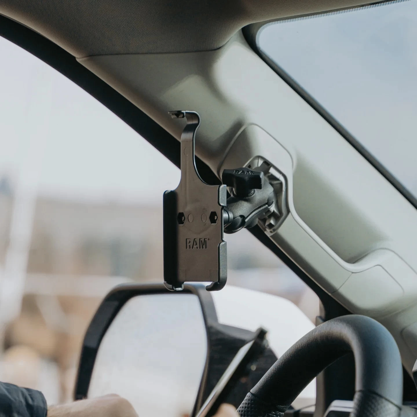 This form-fit cradle was designed specifically for the Apple iPhone 13 Pro Max, 14 Plus, 14 Pro Max, and 15 Plus. Designed for phones without cases, this cradle features one-handed docking and removal of your iPhone, and all buttons, cameras, ports, and speakers remain exposed and accessible. This holder includes a B size RAM® diamond ball base to attach a double socket arm – compatible with a wide range of additional RAM® components.