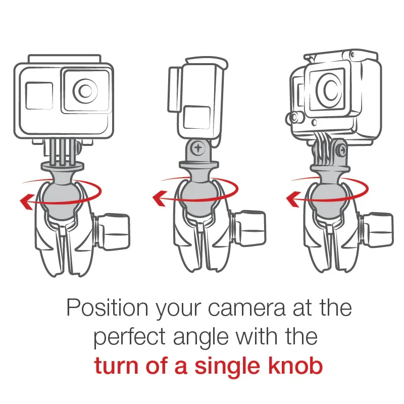 - Action camera adapter includes 1″ B size RAM® rubber ball and is compatible with GoPro® and most other brands; attaches to underside of cameras