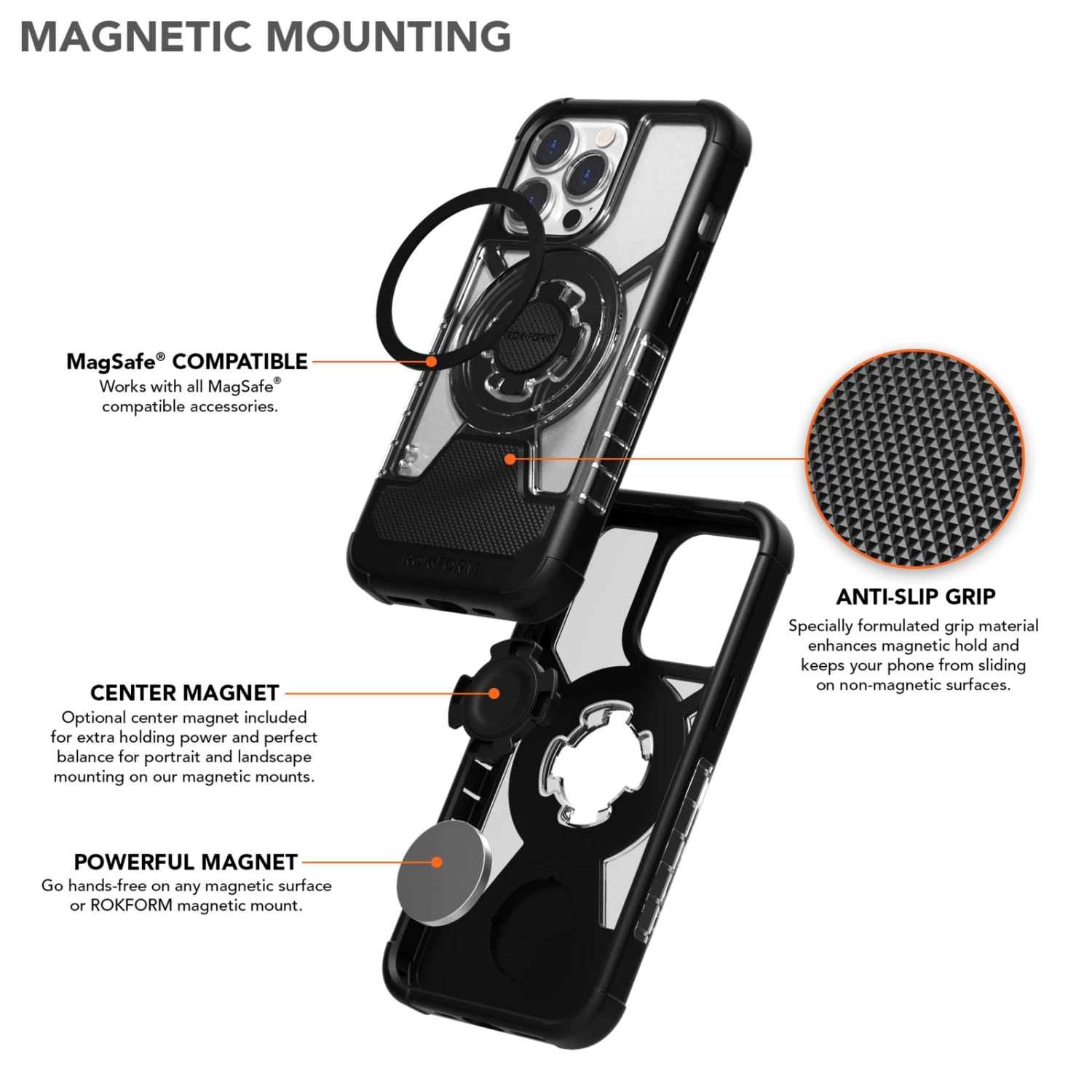 - IT MAKES LIFE EASIER: You can virtually go hands-free anywhere, mount your phone anywhere, protect it and connect it while keeping it in clear view using the powerful magnets or any one of our car, bike, or motorcycle mounts and now even Apple MagSafe® compatible mounts, chargers, and accessories. ROKFORM cases will make everyday tasks easier, and making the choice gives you one less thing to worry about.