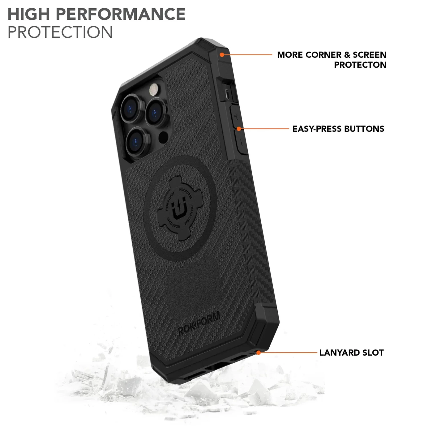 ALL NEW iPhone 14 Pro Max Rugged Case Built for Life-On-The-Go: The latest generation of the ROKFORM Rugged Series case for the iPhone 14 Pro Max is our best yet. Durable and functional on the inside and out, the new Rugged series builds on its reputation as one of the most versatile iPhone 14 Pro Max cases around.