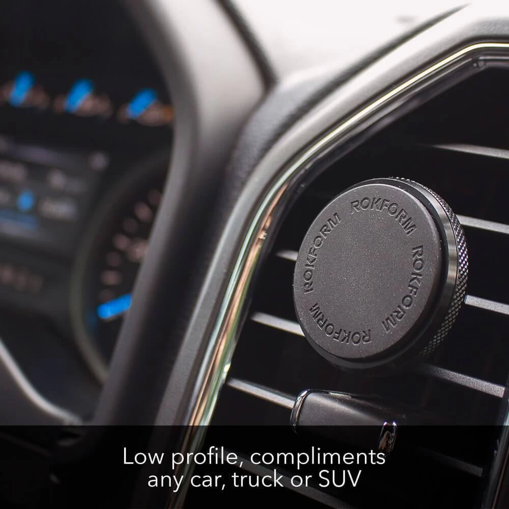 - MOUNT IN SECONDS: Slide mount over almost any vent. Use any Rokform magnetic case or use the supplied inserts to mount to nearly any phone or case.