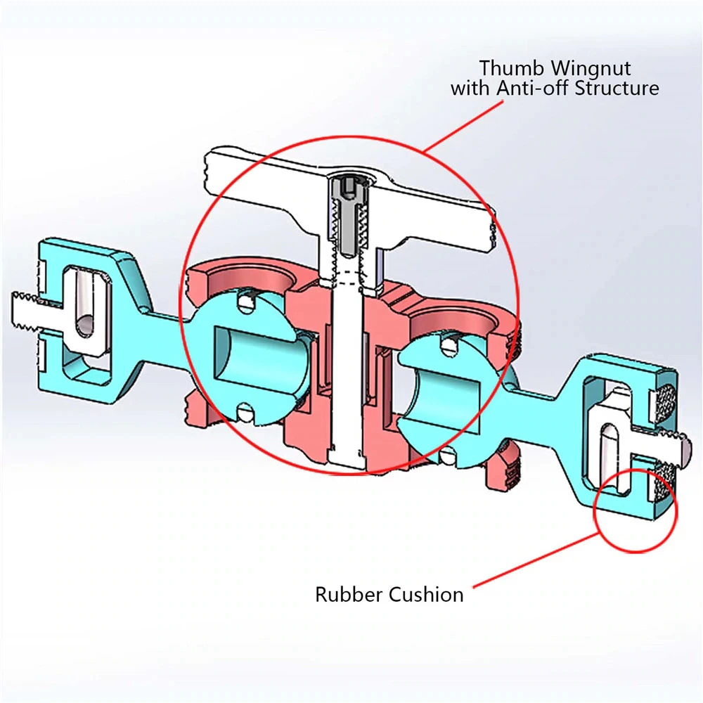 - A single wingnut is applied to lock the double ballhead tight directly, and thumb screws on both ends are utilized to lock the devices manually and a spared hex spanner is ready to lock it tighter.