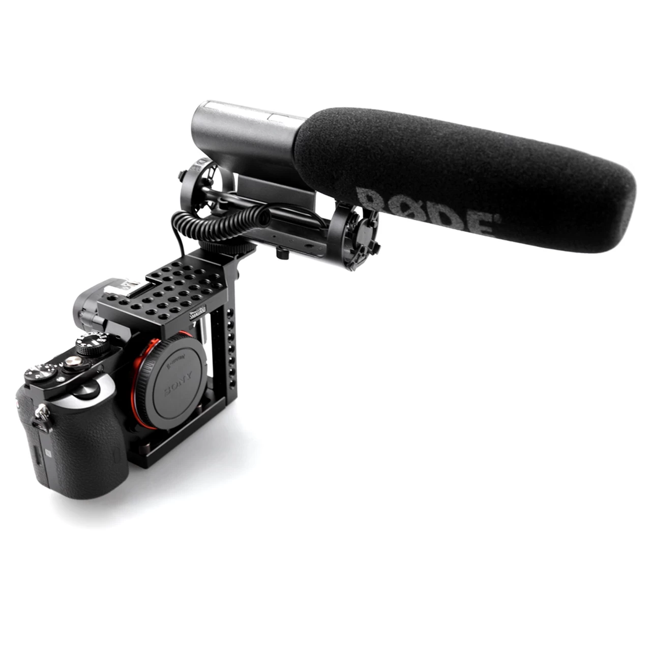 This cold shoe mount can be mounted with two screws on the upper part on the side of the cage. There are often not space enough for a microphone, on the top of the cage, because of the handle. So you can solve the problem with this cold shoe mount.
