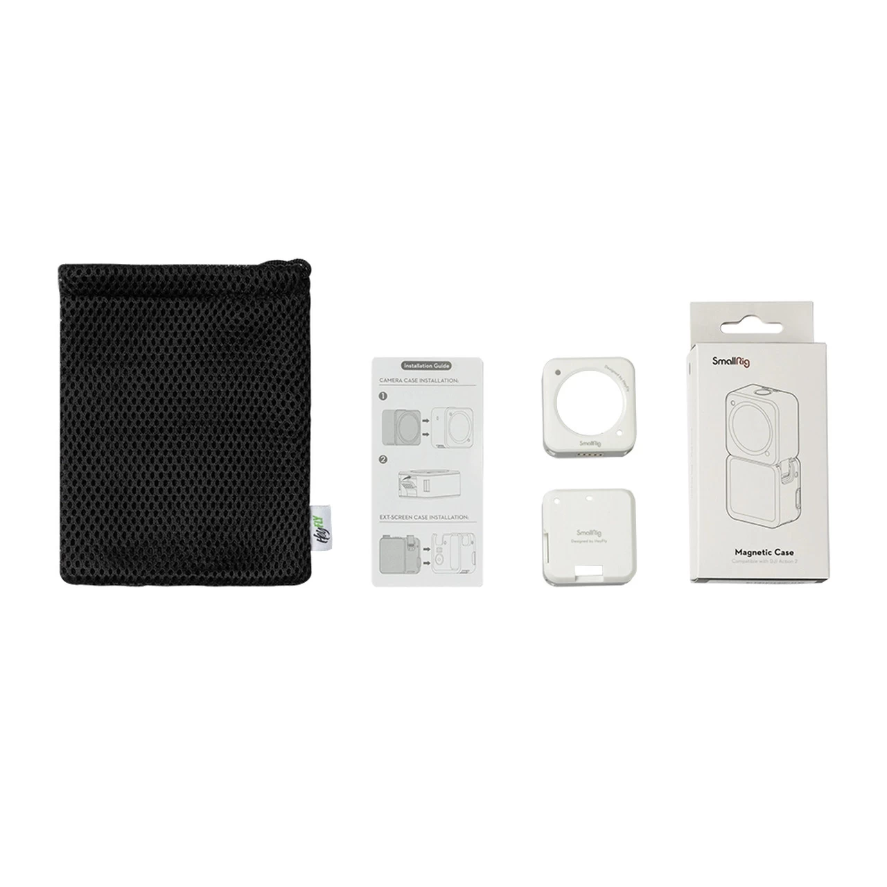 SmallRig DJI Action2 Case 3627 is designed to protect DJI Action2 from scratches. With a modular design, the case, made of PC and TPE, provides strong protection and features magnets to ensure a seamless connection between the lens module and the screen module. It is compatible with all official DJI Action2 accessories, supports multi-scene shooting and includes a net carrying bag for easy storage of camera and accessories.