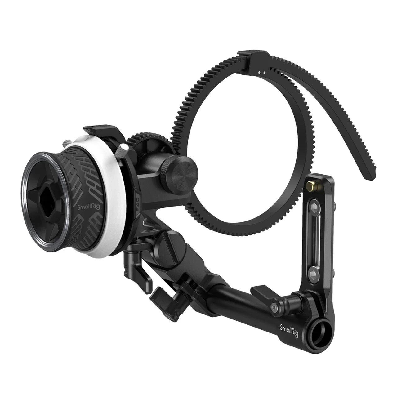 SmallRig Mini Follow Focus 3010 is designed for easy and quick focus control in video shooting.It is fixed to the left side of the lens via Φ15mm Rod 1050 and Rod Clamp (with NATO rail) 3011.The quick-release Tie-style Focus Gear Ring 3284 fits lens of various diameters and drives lens through standard 0.8 MOD gears with different numbers of teeth, comes with M0.8-43T gear 3201.Gear optional model: M0.8-65T gear 3200, M0.8-38T gear 3285; rod clamp (with NATO rail) 3011 supports quick release interface.The marking ring can be easily removed and replaced.The AB marks are adjustable for easy switch between AB focal length and full focal length.Lightweight and portable, the follow focus features anti-sweat and anti-slip focus knob (imitating sports car hub), providing precision comfortable dampening control.Can be mounted at different angles, providing precise adjustment and convenient shooting experience in handheld and tripod scenarios.