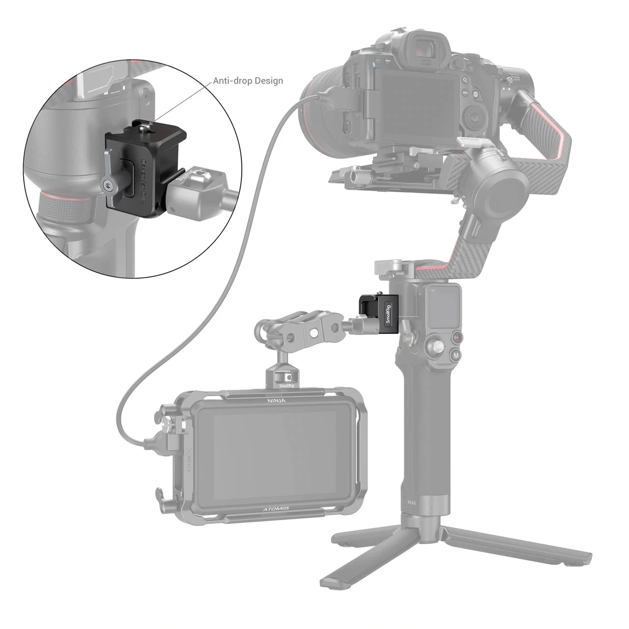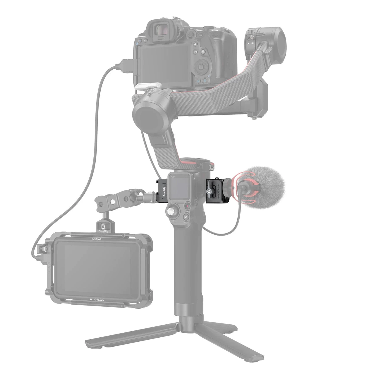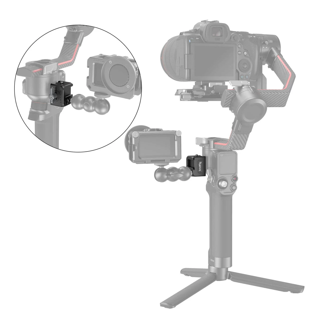 SmallRig NATO Clamp Accessory Mount for DJI RS 2/RSC 2 3025 is designed for attaching a monitor, microphone, wireless devices, etc. on the side of the stabilizer. It can be installed on each side of the stabilizer by NATO clamp, tightened by a rotary knob, easy to quick release. Featuring a 1/4”-20 threaded hole and an ARRI 3/8“-16 locating hole allow the attachment of a monitor with a Magic Arm 2115, as well as 2163 for action camera so that you can have two camera views. The 1/4”-20 threaded hole comes with two locating holes which is compatible with DJI RS 2 smartphone mount. The integrates cold shoe mount can be used for a microphone, sound receiver or wireless devices, etc. Comes with an anti-removal stud on the NATO clamp can prevent the equipment from falling.