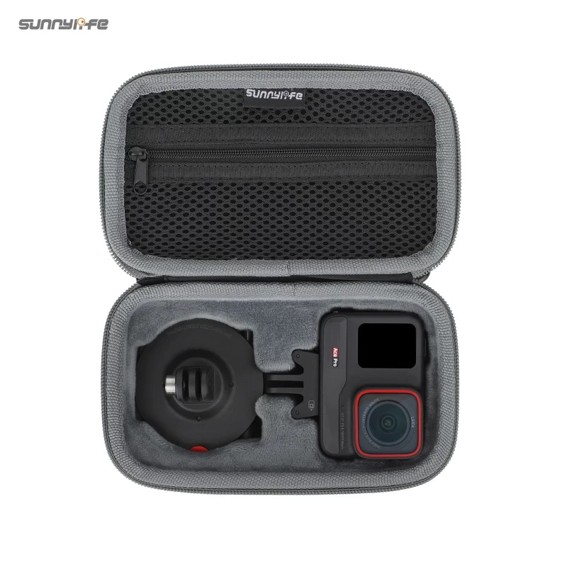 – The mini carrying bag can hold Insta360 Ace/Ace Pro, standard mount, adhesive mount, batteries and screws, etc.